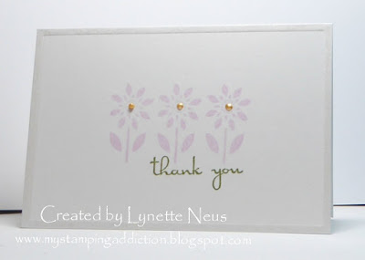 When a friend was over a couple weeks ago, I quickly showed her my alcohol inks. I just totally randomly picked out two bottles and dropped some ink on the cardstock, just to show her how they worked. After she left, I ended up using the same two inks to cover the entire piece. I thought it was pretty cool, and so I made it into a card. I matted it with a matching cardstock. The sentiment was already stamped and on my table. It's from Avery Elle and is embossed in black and double matted and mounted on foam squares.